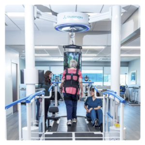 Ovation can offload a patient’s weight with dynamic body-weight support making them feel up to 300 pounds lighter. Adjustments to the level of body-weight support can be made at the touch of a button by pounds or percentage to modify the therapy intensity.