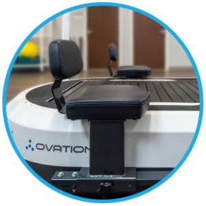 For those who anticipate performing manual assisted treadmill training with their patients, seating may be added to Ovation. The seats and footplates are adjustable to fit most therapists’ preferences.